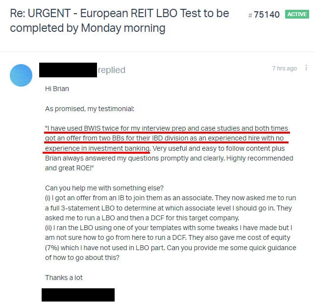 This personalized, expert support is one of the things that sets Breaking Into Wall Street apart and gets you to your goals faster.