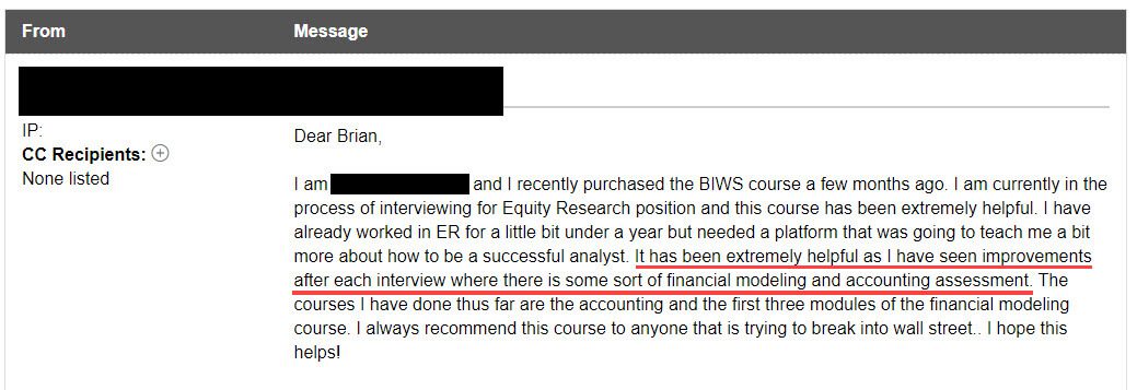 This personalized, expert support is one of the things that sets Breaking Into Wall Street apart and gets you to your goals more quickly.