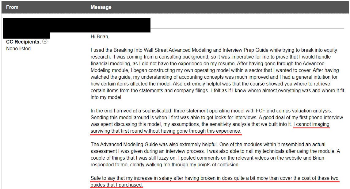 This personalized, expert support is one of the things that sets Breaking Into Wall Street apart and gets you to your goals faster.