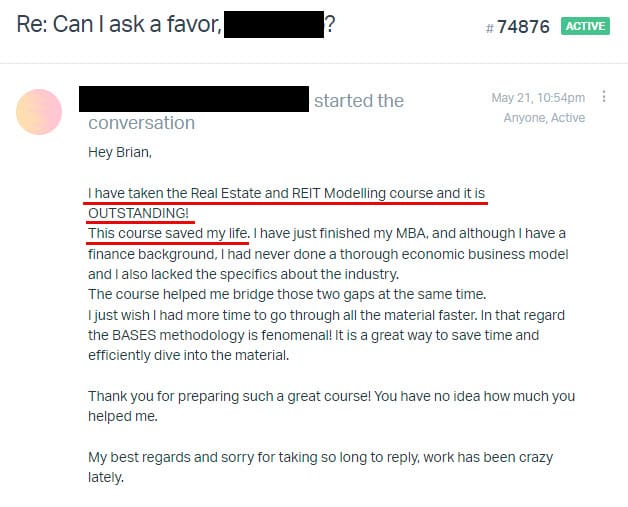 "I have taken the Real Estate and REIT Modeling course, and it is OUTSTANDING! This course saved my life."
