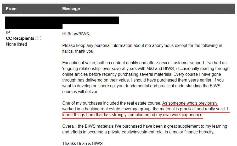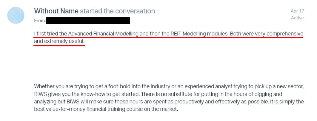 This personalized, expert support is one of the things that sets Breaking Into Wall Street apart and gets you to your goals faster.